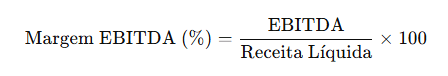 - Indicador de resiliência: Empresas com margens EBITDA mais robustas tendem a suportar crises econômicas com mais facilidade, já que conseguem gerar caixa consistente mesmo em períodos adversos.