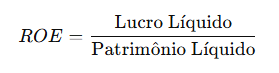 O cálculo é relativamente simples, o ROE é obtido pela divisão do lucro líquido pelo patrimônio líquido da empresa.