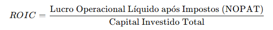 O cálculo do ROIC é feito da seguinte forma:
